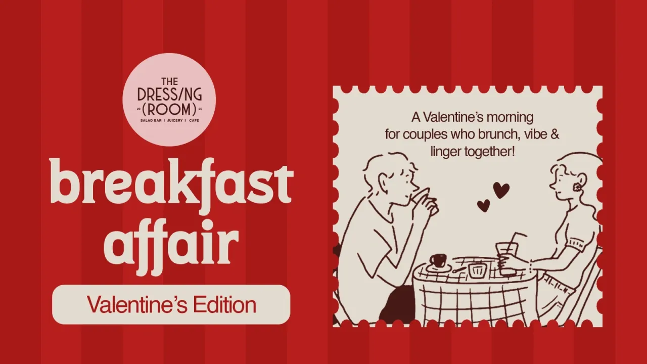 Introducing Breakfast affair – Valentine’s Edition at The Dressing Room. This Valentine’s morning special brings couples together over a slow, indulgent brunch with soft DJ grooves by GRAŹIN setting the mood. Designed for easy conversations, shared plates & lingering moments, it’s a relaxed way to celebrate love without the rush of a typical dinner date. Inclusions: A specially designed brunch experience Soft morning grooves by GRAŹIN Limited couple seating for an intimate, exclusive experience.